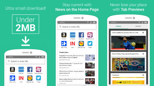లో డేటాలో కూడా ఈ బ్రౌజర్ సమర్ధవంతంగా పనిచేస్తుంది. నెట్ వర్క్ పూర్ ఉన్న ప్రాంతాల్లో కూడా ఈ బ్రౌజర్ మీవ ఎటువంటి అంతరాయం లేకుండా పనిచేసుకోవచ్చు. అమెజాన్ ఇప్పుడు లైట్ వెయిట్ మొబైల్ యాప్స్ ని తయారు చేస్తూ ఇండియా మార్కెట్లో దూసుకుపోతోంది.