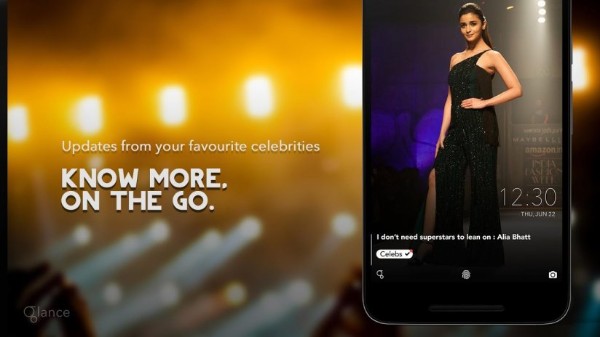 ఆండ్రాయిడ్ AI- శక్తితో పనిచేసే లాక్ స్క్రీన్ సర్వీస్ గ్లాన్స్ ఏదైనా చిత్రం రూపంలో వస్తుంది. కొన్ని స్మార్ట్ఫోన్లలో అంతర్నిర్మిత ఈ సర్వీస్ మీ ఫోన్ యొక్క లాక్ స్క్రీన్ను ఆసక్తికరమైన కంటెంట్ ను స్థిరమైన ఫోటో ఫీచర్ గా మారుస్తుంది. గ్లాన్స్ మీ లాక్ స్క్రీన్ను విజువల్ కంటెంట్ ప్లాట్ఫామ్గా మార్చడం ద్వారా వార్తలు, వీడియోలు, టీవీ సిరీస్లు వంటి విభిన్నమైన కంటెంట్ను కలిగి ఉంటాయి.