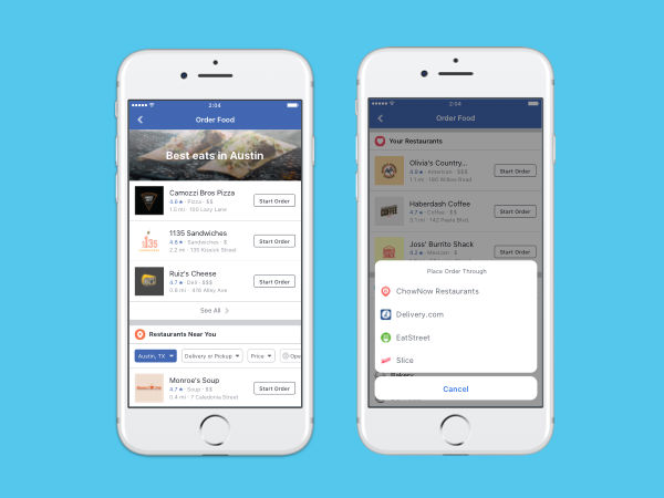 లోకల్ నుంచి నేషనల్ వరకు అనేక రెస్టారెంట్ల నుంచి వినియోగదారులు ఫుడ్ ఆర్డర్ చేసే సదుపాయాన్ని ఫేస్బుక్ కల్పించింది. నచ్చిన హోటల్ నుంచి ఫుడ్ ఆర్డర్ చేసి తెప్చించుకోవచ్చు.