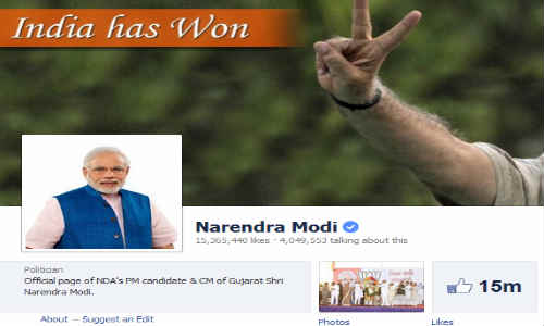 దేశ ప్రధానిగా మరికొద్ది రోజుల్లో బాధ్యతలు చేపట్టనున్న భారతీయ జనతా పార్టీ ప్రధాన మంత్రి అభ్యర్థి నరేంద్ర మోడీ ఫేస్బుక్ పేజీకి సంబంధించి ఆదరణ విపరీతంగా పెరుగుతోంది. మోదీ ఫేస్బుక్ పేజీని లైక్ చేసేవారి సంఖ్య అంతర్జాతీయంగా రోజురోజుకు పెరుగుతోంది.