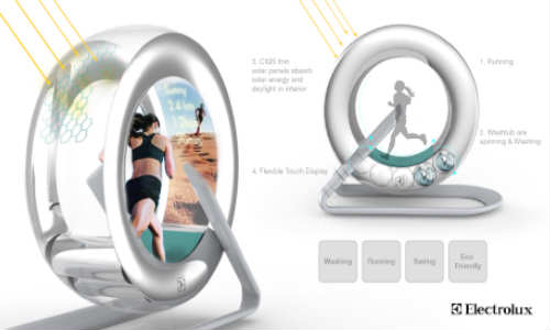 ఒక్క పనికి రెండు లాభాలు, ఆరోగ్యానికి ఆరోగ్యం.. సమయం ఆదా ఇక డబ్బు కూడా పొదుపు. దక్షిణ కొరియాకు చెందిన ఓ ఇండస్ట్రియల్ డిజైనర్ రింగ్ ఆకారంతో కూడిన ట్రెడ్మిల్ (జాగింగ్ మెచీన్)ను వృద్థి చేసారు. ఈ ప్రత్యేకమైన ట్రెడ్మిల్కు సంబంధించిన కాన్సెప్ట్ను పరిశీలించినట్లయితే.. ఈ జాగింగ్ పరికరం మీ బట్టలను ఎంచక్కా ఉతికేస్తుంది అది కూడా మీ కైనటిక్ శక్తితో...