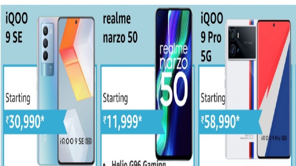 iQoo 9 SE స్మార్ట్ ఫోన్ ఇప్పుడు అమెజాన్ లో 8GB RAM + 128GB స్టోరేజ్ వేరియంట్ రూ.33,990 ధర వద్ద సాలిడ్ ఐస్ బ్లూ మరియు స్టోర్మ్ బ్లాక్ వంటి కలర్ ఎంపికలలో అందుబాటులో ఉంది. ఇది ఆండ్రాయిడ్ 11- ఆధారిత ఆరిజిన్ OS 1.0 పై రన్ అవుతూ డ్యూయల్-నానోసిమ్ స్లాట్లకు మద్దతును ఇస్తుంది. ఇది 6.67-అంగుళాల ఫుల్-హెచ్డి+ (1,080x2,400 పిక్సెల్స్) LCD డిస్ప్లే 120Hz రిఫ్రెష్ రేట్, 240Hz టచ్ శాంప్లింగ్ రేట్, 20: 9 యాస్పెక్ట్ రేషియో, DCI-P3 కలర్ స్వరసప్తకం మరియు HDR 10 సపోర్ట్ కలిగి ఉంది. ఇది TUV Rheinland ధృవీకరించబడింది. ఈ ఫోన్ Qualcomm Snapdragon 888 5G మొబైల్ ప్లాట్ఫారమ్ SoC ద్వారా శక్తిని పొందుతూ 12GB LPDDR5 ర్యామ్తో జత చేయబడి వస్తుంది. అలాగే ఇది 256GB UFS 3.1 ఇంటర్నల్ స్టోరేజ్ మద్దతుతో అందించబడుతుంది. అలాగే ఫోన్ వెనుక భాగంలో ట్రిపుల్ రియర్ కెమెరా సెటప్తో ప్యాక్ చేయబడి ఉంటుంది.
