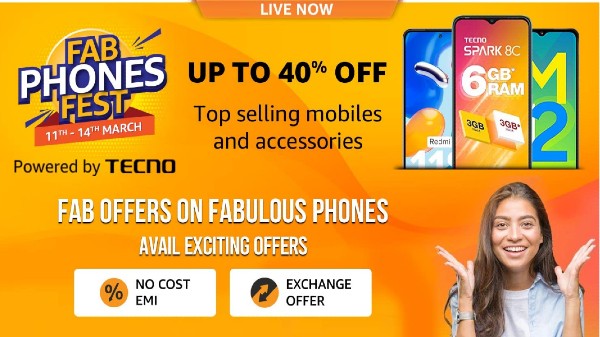 ప్రముఖ ఇ-కామర్స్ దిగ్గజం అమెజాన్ ఇప్పుడు తన యొక్క వినియోగదారుల ముందుకు అమెజాన్ ఫ్యాబ్ ఫోన్స్ ఫెస్ట్ పేరుతో మరొక సేల్ ను ప్రారంభించింది. మార్చి 14 వరకు జరిగే ఈ సేల్ లో ఆన్లైన్ ద్వారా షాపింగ్ చేయడానికి ఇష్టపడే వారికి అమెజాన్ తన సైట్ లో ప్రత్యేకమైన ఆఫర్లను అందిస్తుంది. బడ్జెట్ ధరలో లభించే బ్రాండెడ్ స్మార్ట్ఫోన్లను డిస్కౌంట్ ధరల వద్ద కొనుగోలు చేయాలనుకునే వారికి ఇది సరైన సమయం. అమెజాన్ ప్రస్తుత విక్రయ సమయంలో బ్యాంక్ అఫ్ బరోడా, HDFC బ్యాంక్ క్రెడిట్ మరియు డెబిట్ కార్డులను ఉపయోగించి కొనుగోలు చేసే వారికి 10% వరకు ఇన్స్టెంట్ తగ్గింపును అందిస్తుంది. అదనంగా నో-కాస్ట్ EMI ఎంపికలు కూడా ఉన్నాయి. వీటి గురించి మరిన్ని వివరాలను తెలుసుకోవడానికి ముందుకు చదవండి.