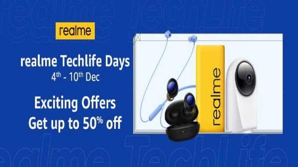 ప్రముఖ ఈ-కామర్స్ సంస్థ అమెజాన్ లో ఇప్పుడు నిర్వహిస్తున్న రియల్మి టెక్ లైఫ్ డేస్ ప్రత్యేక సేల్స్ లో రియల్మి బ్రాండ్ యొక్క స్మార్ట్ ఫోన్ యొక్క ప్రొడక్టుల కొనుగోలు మీద 50% వరకు డిస్కౌంట్ ను అందిస్తోంది. పవర్ బ్యాంకులు, స్మార్ట్ వాచ్, బ్లూటూత్ ఇయర్ఫోన్స్, ఇయర్బడ్స్ వంటి వాటిని కొనుగోలు చేయలుకునే వారు ఇప్పుడు కొన్ని ప్రత్యేక ఆఫర్ల వద్ద వాటిని పొందవచ్చు. వీటి గురించి మరిన్ని వివరాలను తెలుసుకోవడానికి ముందుకు చదవండి. అలాగే ఈ విక్రయ సమయంలో ఐసీఐసీఐ కార్డులను ఉపయోగించి కొనుగోలు చేసే వారికి 10% తగ్గింపును పొందవచ్చు.