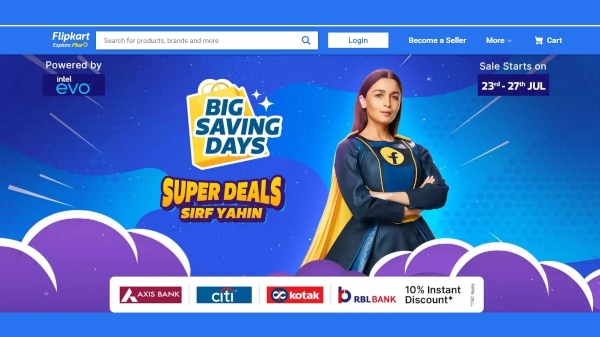 ప్రముఖ ఈ కామర్స్ సంస్థ Flipkart తమ ప్లాట్ఫాంపై బిగ్ సేవింగ్ డేస్ సేల్ (Big Saving Days Sale) ను ప్రకటించింది. జులై 23వ తేదీ నుంచి జులై 27వ తేదీ వరకు ఈ Big Saving Days Sale నిర్వహించనున్నట్లు వెల్లడించింది. ఈ సేల్లో భాగంగా వివిధ కంపెనీలకు చెందిన పలు ఉత్పత్తులపై ఆకర్షణీయమైన డిస్కౌంట్లు లభించనున్నాయి.