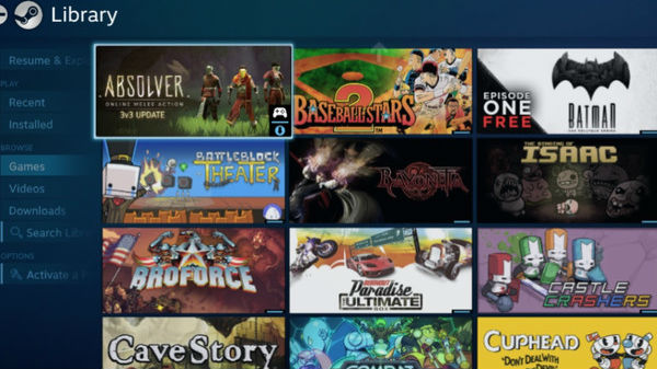 వాల్వ్, తన స్టీం అప్లికేషన్ టీవీ మరియు పెద్ద మానిటర్స్ లో కూడా ఉపయోగించేందుకు వీలుగా తయారు చేసింది. ఇలా ఫుల్ స్క్రీన్ లో వీక్షించడానికి view>Big picture modeలో ఆక్టివేట్ చేసుకోవలసి ఉంటుంది.