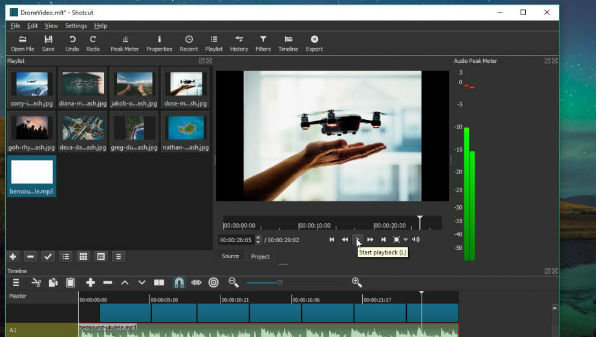షాట్ కట్ ని డౌన్లోడ్ మరియు ఇన్స్టాల్ చేయండి ,మరియు ఓపెన్ చేసి పై భాగంలో వున్న 'ప్లే లిస్ట్ ' బటన్ ని క్లిక్ చేయండి. మీ వీడియో క్రియేట్ చేయటానికి ఉపయోగించిన అన్ని మీడియా ఫైల్స్ ని ప్లేలిస్ట్ కలిగి ఉంటుంది.
