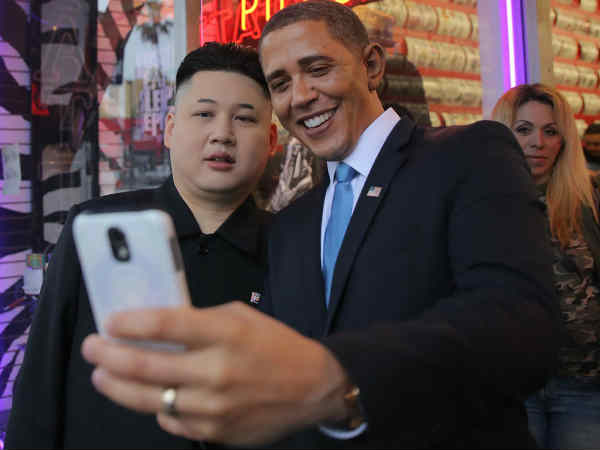 గతేడాది ఆస్కార్ వేడుకలు జరుగుతున్న ప్రదేశం బయట హాలీవుడ్ కమెడియన్ హీరో రెగ్గీ బౌన్ ఒబామా వేషంలోనూ..అలాగే నార్త్ కొరియా అధ్యక్షుడు కిమ్ జాంగ్ వేషంలో అమెరికన్ రేడియో యాక్టర్ హోవార్డ్ వచ్చి అందర్నీ షాక్లో ముంచి పడేశారు. వారిద్దరూ వేసుకున్న వేషాలు అచ్చం ఒబామా, కిమ్ జాంగ్ లా ఉండటంతో ఆస్కార్ కు వేడుకకు వెళ్తున్న ప్రతినిధులు ఆ వేడుకలు వదిలేసి వారితో సెల్ఫీలు దిగేందుకు తెగ పోటీ పడ్డారు..వీరిద్దరూ కలవడమేందని షాక్ తిన్నంత పనిచేశారు కూడా. ఇక ఇద్దరు శత్రువులు మిత్రులయినట్లు కిమ్ జాంగ్ వేషంలో ఉన్న హోవార్డ్ అలాగే ఒబామా వేషంలో ఉన్న రెగ్గి టూరిస్టుల కెమెరాలకు ఫోజులిస్తూ ఒకరినొకరు చేయిపట్టుకుని నడుస్తుంటే అందరి దృష్టి వారిమీదనే ఉంది. అందరూ అది నటనని తెలియక నోరెళ్లబెట్టారు మరి. ఇక కిమ్ జాంగ్ రూపంలో ఉన్న వ్యక్తి వచ్చి రాగానే హల్లో స్టుపిడ్ అమెరికన్స్ అంటూ తనదైన శైలిలో ఘాటు వ్యాఖ్యలు చేశారు. అమెరికా చచ్చిపోయిందంటూ ఇంకా పదునైన మాటలు వాడారు కూడా. అయితే అక్కడి ప్రజలు దీన్ని సీరియస్గా తీసుకోకుండా తెగ ఎంజాయ్ చేశారు. ఇక ఒబామా రూపంలో ఉన్న వ్యక్తి కిమ్ జాంగ్ను ఉద్దేశించి మీ రాక మాకెంతో శుభదాయకం. మా దేశ ప్రజలు నీ రాకను స్వాగతిస్తున్నారు. మీతో కలిసి ఫోటోలు దిగాలనుకుంటున్నారంటూ వ్యంగ్యాస్త్రాలు వదలడంతో అక్కడ నవ్వుల వరద పారింది. ఇంతలో ఓ బ్రెజిల్ కి చెందిన స్త్రీ అక్కడికి వచ్చి ఒబామా ఐ లవ్ యూ అంటూ చెప్పడం అలాగే కిమ్ జాంగ్ నుద్దేశించి నీకు ఇక్కడేం పని వెంటనే నార్త్ కొరియా వెళ్లు అనడంతో అక్కడి వాతావరణం ఒక్కసారిగా వేడెక్కింది. వారిద్దరూ ఆ స్త్రీ దెబ్బకు షాక్ తిన్నంత పనిచేశారు. ఆ బ్రెజిల్ వనితకు వీరిద్దరూ మేము నిజమైన ఒబామా ,కిమ్ జాంగ్లం కాదని సర్ది చెప్పలేక నానా అవస్థలు పడ్డారట. చివరకు ఎలాగోలా తంటాలు పడి ఆమెను అక్కడినుంచి పంపించి వేశారు. ఇదిలా ఉంటే అక్కడ చాలామంది అమెరికన్లు ఒబామా వేషంలో ఉన్న రిగ్గితో ఫోటోలు దిగేందుకు ఆసక్తి చూపగా చైనా టూరిస్టులు మాత్రం కిమ్ జాంగ్తో ఫోటోలు దిగేందుకు తెగ ఆసక్తి చూపారు. ఎంతైనా శత్రువు శత్రువే.. మిత్రుడు మిత్రుడే అన్నట్లుగా వారితో ఫోటోలు దిగారు టూరిస్టులు ఇక ఒబామా వేషంలో ఉన్న వ్యక్తిని ఉద్దేశించి కిమ్ జాంగ్ వేషంలో ఉన్న వ్యక్తి నీకు నార్త్ అమెరికాలో ఫాలోయింగ్ బాగా ఉంటే మాకు ఆసియాలో అదిరిపోయే ఫాలోయింగ్ ఉందని చెప్పడంతో అక్కడ ఆసక్తికర వాతావరణం ఏర్పడింది. ఇక ఫైనల్గా కిమ్ జాంగ్ రూపంలో ఉన్న హోవార్డ్ నార్త్ కొరియా వెళ్లడానికి 1500 డాలర్లు ఫండ్స్ కావాలని ప్రచారం చేస్తూ అక్కడ అందర్నీ చందాలు ఇవ్వమని అడగం కూడా చాలా నవ్వు తెప్పించింది కూడా. ఆ సన్నివేశాన్ని చూసి అందరూ తెగ ఎంజాయ్ చేశారు. కిమ్ జాంగ్ వేషంలో 