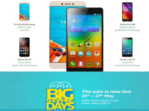 భారతదేశపు ప్రముఖ ఈ-కామర్స్ వెబ్సైట్ ఫ్లిప్కార్ట్, మే 25 నుంచి మూడు రోజుల పాటు నిర్వహిస్తోన్నబిగ్ షాపింగ్ డేస్ సేల్లో భాగంగా వివిధ రకాల స్మార్ట్ఫోన్ల పై ఆసక్తికర డిస్కౌంట్లతో పాటు ఎక్స్ఛేంజ్ ఆఫర్లను అందిస్తోంది.