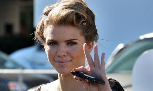 సెట్ నుంచి వెనుదిరుగుతూ తన బ్లాక్బెర్రీ ఫోన్తో కరాచలనం చేస్తున్న ప్రముఖ హాలివుడ్ సెలబ్రెటీ ‘అన్నాలిన్ మెక్కార్డ్’.