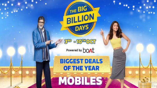 ఫ్లిప్కార్ట్ తన బిగ్ బిలియన్ డేస్ సేల్ని అక్టోబర్ 3 నుండి అక్టోబర్ 10 వరకు హోస్ట్ చేయడానికి సిద్ధంగా ఉంది. ఈ సేల్ లో రాబోతున్న టాప్ ఆఫర్ల గురించి చూడండి. ఆన్లైన్ ఇ-కామర్స్ ప్లాట్ఫాం ఫ్లిప్కార్ట్ అక్టోబర్ 3 న ది బిగ్ బిలియన్ డేస్ సేల్ని ప్రారంభిస్తోంది. ఆఫర్లలో భాగంగా యాక్సిస్ బ్యాంక్ మరియు ICICI బ్యాంక్ డెబిట్ మరియు క్రెడిట్ కార్డ్ హోల్డర్లు అదనంగా 10% తక్షణ డిస్కౌంట్ పొందవచ్చు.