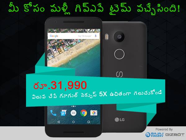 బహుమతిగా ప్రధానం చేయబోయే ఎల్జీ గూగుల్ నెక్సుస్ 5ఎక్స్ స్మార్ట్ఫోన్ వారంటీ, ఎక్స్చేంజ్ ఇంకా కస్టమర్ సర్వీసుకు సంబంధించి గిజ్బాట్ లేదా బజాజ్ ఫిన్సర్వ్కు ఏ విధమైన బాధ్యత ఉండదు. ఈ పోటీ నవంబర్ 6, 2015 వరకు కొనసాగుతుంది. బెస్ట్ ఆఫ్ లక్!