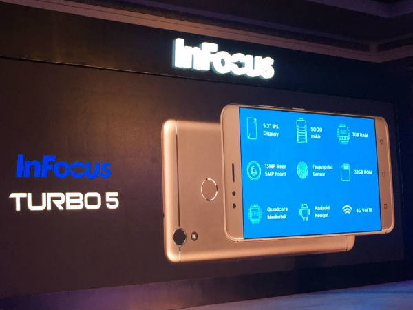 అమెరికాకు చెందిన ప్రముఖ స్మార్ట్ఫోన్ల తయారీ కంపెనీ InFocus చైనా బ్రాండ్లకు ధీటుగా ఓ శక్తివంతమైన స్మార్ట్ఫోన్ను ఇండియన్ మార్కెట్లో లాంచ్ చేసింది. InFocus Turbo 5 పేరుతో విడుదలైన ఈ ఫోన్ ధర రూ.6,999. జూలై 4 నుంచి అమెజాన్ ఇండియాలో ఈ ఫోన్ దొరుకుతుంది.