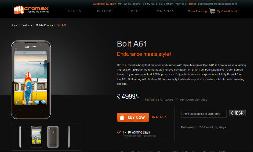 ఆన్లైన్ విపణిలోకి మైక్రోమాక్స్ బోల్ట్ ఏ61