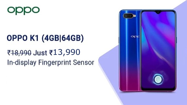 ఇండియాలో ఒప్పో K1ను ఇప్పుడు రూ.13,990 ధర వద్ద కొనుగోలు చేయవచ్చు. ఇది మునుపటి ధరతో పోలిస్తే సుమారు రూ.3,000 ల తగ్గింపు పొందింది. ఈ స్మార్ట్ఫోన్ ఇండియాలో సింగిల్ వేరియంట్ 4GB ర్యామ్ + 64GB స్టోరేజ్ ను రూ.16,990 ధర వద్ద లాంచ్ అయింది. దీనిని ఇప్పుడు కొత్త ధర వద్ద ఫ్లిప్కార్ట్ నుండి కొనుగోలు చేయడానికి అనుదుబాటులో ఉంది.