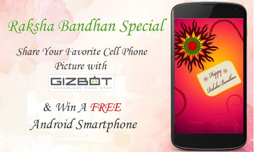 సోదర ప్రేమకు ప్రతిరూపంగా నిలిచే ‘రాఖీ పౌర్ణమిని' పురస్కరించుకుని భారతదేశపు అత్యుత్తమ టెక్నాలజీ వెబ్ పోర్టల్ గిజ్బాట్ తమ పాఠకులకు ప్రత్యేక శుభాకాంక్షలను తెలుపుతూ ‘రక్షా బంధన్ స్పెషల్'పేరుతో ప్రత్యేక కాంటెస్ట్ను నిర్వహిస్తోంది. ఈ పోటీలో గెలుపొందిన విజేతకు గిజ్బాట్ ఆండ్రాయిడ్ స్మార్ట్ఫోన్ను బహుమతిగా అందించనుంది. పోటీలో పాల్గొనే వారు ఏమి చేయాలంటే..?