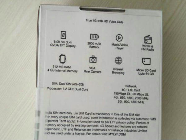 జియో 4G VoLTE ఫోన్ స్పెసిఫికేషన్స్..