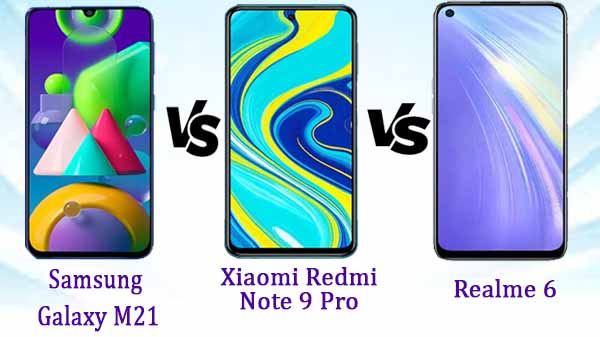 శామ్సంగ్ గెలాక్సీ M21, రియల్మి 6 మరియు షియోమి రెడ్మి నోట్ 9 మూడు స్మార్ట్ఫోన్లు ఈ ధర విభాగంలో ఉన్నపటికీ స్పెసిఫికేషన్స్ విషయంలో కొద్ది కొద్ది మార్పులు ఉన్నాయి. ఈ మూడు స్మార్ట్ఫోన్ల మధ్య గల పోలికలను తెలుసుకోవడానికి ముందుకు చదవండి.