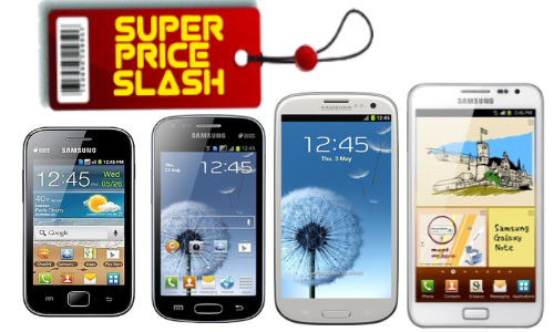 సౌత్ కొరియన్ స్మార్ట్ఫోన్ దిగ్గజం సామ్సంగ్ పలు గెలాక్సీ సిరీస్ స్మార్ట్ఫోన్ల ధరలను తగ్గించింది. ఈ మోడళ్లలో గెలాక్సీ ఎస్3కి చోటు దక్కటం విశేషం. తగ్గింపు ధరల్లో భాగంగా గెలాక్సీ ఎస్3 రూ.31,900కు లభ్యమవుతోంది (పాత ధర రూ.34,900). మరో స్మార్ట్ఫోన్ గెలాక్సీ నోట్2 రూ.27,500కు లభ్యమవుతోంది (పాత ధర రూ.29,990). మరో స్మార్ట్ఫోన్ గెలాక్నీఎస్ డ్యుయోస్ రూ.14,900కి లభ్యమవుతోంది (పాత ధర రూ.17,900). మరో హ్యాండ్ సెట్ గెలాక్సీ ఏస్ డ్యుయోస్ను ఇప్పుడు రూ.10,900కే సొంతం చేసుకోవచ్చు. ప్రముఖ ఆన్లైన్ రిటైలర్లు సాహోలిక్ (saholic), ఫ్లిప్కార్ట్ (flipkart)లు ఈ రాయితీలను అందిస్తున్నాయి.