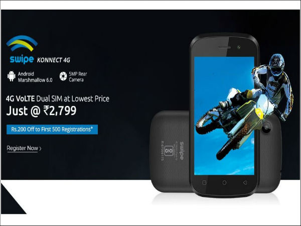 స్వైప్ టక్నాలజీస్ మరో తక్కువ ధర 4G VoLTE స్మార్ట్ఫోన్ను మార్కెట్లో విడుదల చేసింది. స్వైప్ కనెక్ట్ 4జీ పేరుతో లాంచ్ అయిన ఈ ఫోన్ ధర రూ.2,799.