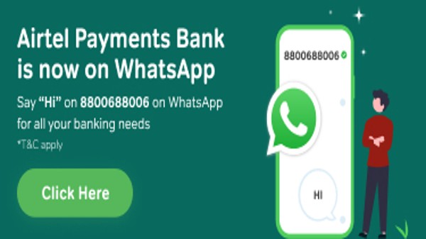 ** బ్యాంకింగ్ సేవలు, గిఫ్ట్ కార్డ్లు మరియు బంగారం కొనడం, ఫాస్ట్ట్యాగ్ సేవలు, లోన్లు, రీఛార్జ్లు మరియు ఆన్లైన్ బిల్ పేమెంట్స్ వంటివాటిని మీరు ఎయిర్టెల్ పేమెంట్స్ బ్యాంక్తో వాట్సాప్ ద్వారా చేయవచ్చు.