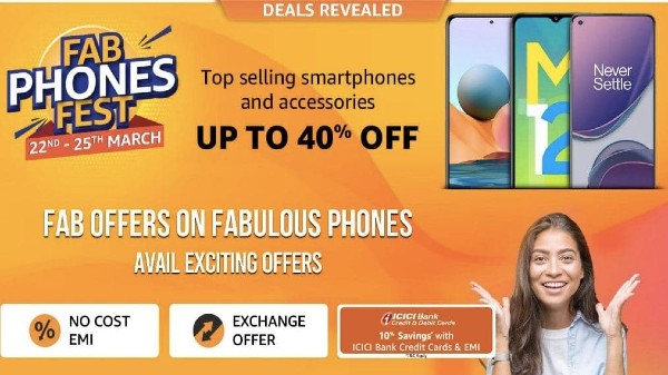'అమెజాన్ ఫాబ్ ఫోన్స్ ఫెస్ట్' అమ్మకం సమయంలో వినియోగదారులు స్మార్ట్ఫోన్లపై 40% వరకు రాయితీ పొందుతారు. అదనంగా ఇ-టైలర్ నో-కాస్ట్ EMI ఆప్షన్స్, ఎక్స్ఛేంజ్ డిస్కౌంట్ ఆఫర్లు మరియు బ్యాంక్ ఆఫర్లు కూడా అందిస్తుంది. ముఖ్యంగా ఐసీఐసీఐ బ్యాంక్ క్రెడిట్ మరియు డెబిట్ కార్డుల కొనుగోలు మీద 10% వరకు అదనపు డిస్కౌంట్ లభిస్తుంది. అలాగే అమెజాన్ పే ద్వారా కొనుగోలు చేసిన వారికి తమ యొక్క కొనుగోలు మీద అధిక మొత్తంలో క్యాష్ బ్యాక్ లు లభిస్తాయి.