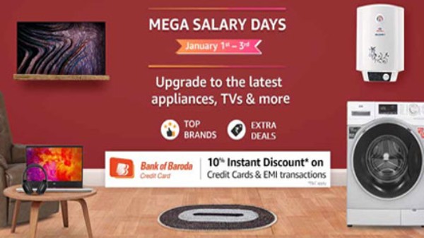 అమెజాన్ మెగా శాలరీ డే సేల్ జనవరి 1 వ తేదీన మొదలైంది. ఎలక్ట్రానిక్స్, గాడ్జెట్లు మరియు స్మార్ట్ టీవీలపై డిస్కౌంట్ మరియు ధర తగ్గింపులను అందిస్తుంది. ఈ సమయం లో, అమెజాన్ కేటగిరీలో అత్యధికంగా అమ్ముడవుతున్న కొన్ని ఉత్పత్తులకు ప్రత్యేక తగ్గింపు ఆఫర్లను ఇచ్చే అవకాశం ఉంది.