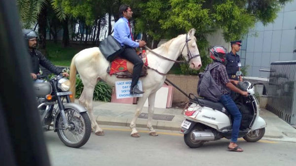 కార్లు, బైక్లను నమ్ముకుంటే మళ్లీ ఆఫీస్కి లేట్గా వెళ్తాను అనుకున్నాడో ఏమో కానీ ఇలా గుర్రంపై స్వారీ చేసి దారిపొడవునా అందరి దృష్టిని ఆకర్షించాడు.