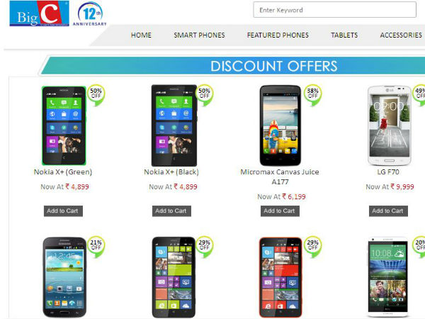 బిగ్సీ మొబైల్స్ 12వ వార్షికోత్సవ ఆఫర్లు
