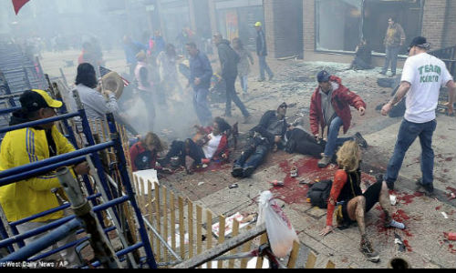 1.) బాంబ్ బ్లాస్ట్కు సంబంధించి డేవిడ్ తన ఐఫోన్ నుంచి తీసిన ఫోటో ఇదే. ఎర్రటి సర్కిల్ లో కనిపిస్తున్న వ్యక్తిని ఎఫ్ బిఐ రెండవ అనుమానితుడిగా భావిస్తోంది.