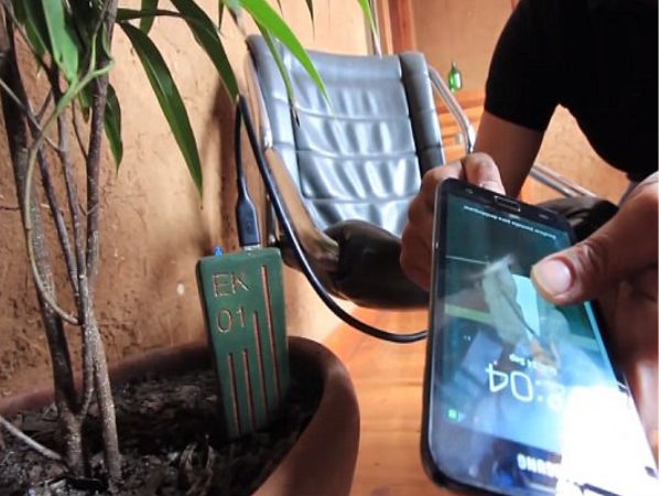 త్వరలో కరెంటుతో పనిలేకుండా మీ మొబైల్ ఫోన్లను చార్జ్ చేసకోవచ్చు. ఇది ఏలా సాధ్యం అంటారా..? చిలీ దేశానికి చెందిన ముగ్గురు యువ ఇంజినిర్లు ‘‘E-Kaia" పేరుతో ఓ సరికొత్త యూఎస్బీ చార్జర్ను అభివృద్థి చేసారు. ఈ ప్రత్యేకమైన చార్జర్, కుండీలో నాటి ఉన్న మొక్క ద్వారా శక్తిని గ్రహించుకుని ఆ శక్తిని మొబైల్ ఫోన్లకు ఉపయోగపడేలా చేస్తుంది. మొక్కలు విడుదల చేసే ఆర్గానిక్ మెటీరియల్ను ఈ చార్జర్ లైట్ ఎనర్జీ నుంచి కెమెకిల్ ఎనర్జీగా మార్చేస్తుంది. ఈ విధానంలో భాగంగా ఒక్కో మొక్క నుంచి ఉత్పత్తయ్యే శక్తి ద్వారా గంటన్నర వ్యవధిలో స్మార్ట్ఫోన్ను పూర్తిగా చార్జ్ చేయవచ్చు.అవును..