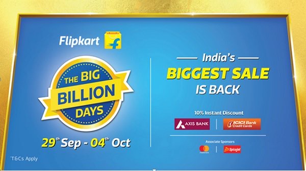 భారతదేశపు అతిపెద్ద ఆన్లైన్ ఫెస్టివల్ సేల్ - 'ఫ్లిప్కార్ట్ బిగ్ బిలియన్ డేస్ సేల్' పెద్ద బ్యాంగ్తో కిక్స్టార్ట్ ప్రొసీడింగ్స్కు సిద్ధమైంది. ఫ్లిప్కార్ట్లో అందరు ఎంతో ఆసక్తిగా ఎదురుచూస్తున్న వారం రోజుల కోలాహలం సెప్టెంబర్ 29 న ప్రారంభమై అక్టోబర్ 4 వరకు ఉంటుంది. ఈ ఆరు రోజుల గ్రాండ్ షాపింగ్ ఫెస్టివల్ లో మీకు నచ్చిన ప్రతి వస్తువును ఉత్తమ ధరకు కొనుగోలు చేయడానికి ప్రతి ఒక్కరికీ సువర్ణావకాశాన్ని ఇస్తుంది.