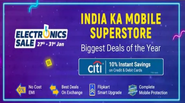 ఫ్లిప్కార్ట్ ఈ నెలలో భారతదేశంలో మరో సేల్ ఈవెంట్ను నిర్వహిస్తోంది, అది ఫ్లిప్కార్ట్ ఎలక్ట్రానిక్స్ సేల్. ఈ సేల్ ఇప్పటికే మొదలైంది, మరియు ఈ నెల 31 వ తేదీ వరకు జరుగుతుంది. ఈ సేల్లో భాగంగా, కస్టమర్లు స్మార్ట్ఫోన్లతో సహా పలు రకాల ఎలక్ట్రానిక్స్పై డిస్కౌంట్లను ఆస్వాదించవచ్చు. తాత్కాలిక ధరల తగ్గింపుతో అనేక స్మార్ట్ఫోన్లు బ్యాంక్ డీల్లను కలిగి ఉంటాయి. అంటే వారు తగ్గింపు ధరపై 10 శాతం వరకు తగ్గింపు పొందవచ్చని అర్థం. ఐఫోన్ 12 మినీ, Moto G51 5G, Realme GT Neo 2 మరియు మరిన్నింటిని విక్రయ ఈవెంట్ సమయంలో నిలిపివేస్తున్న కొన్ని టాప్ ఫోన్లు ఉన్నాయి. Flipkart ఈ సేల్ ఈవెంట్ ఇప్పుడు భారతదేశంలో ప్రత్యక్ష ప్రసారం చేయబడిందని మరియు జనవరి 31న ముగుస్తుందని పేర్కొంది.