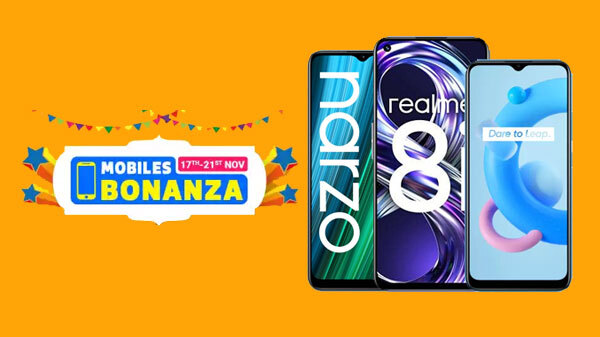 ఫ్లిప్కార్ట్ మొబైల్ బొనాంజా సేల్ అన్ని బ్రాండ్లపై అంతటా అనేక స్మార్ట్ఫోన్లపై ఆఫర్ లు మరియు తగ్గింపులను అందిస్తుంది. ఈ సేల్ సమయంలో, మీరు చాలా తక్కువ ధరకు Realme స్మార్ట్ఫోన్లను పొందే అవకాశం ఉంది. అలాగే, నో-కాస్ట్ EMI చెల్లింపు మరియు ఎక్స్ఛేంజ్ తగ్గింపుతో సహా ఇతర ప్రయోజనాలు కూడా ఉంటాయి. ఇ-కామర్స్ రిటైలర్ తక్కువ రేటుతో పూర్తి మొబైల్ ప్రొటెక్షన్ ప్లాన్ ను కూడా అందిస్తుంది మరియు భాగస్వామి తగ్గింపులను కూడా అందిస్తుంది.