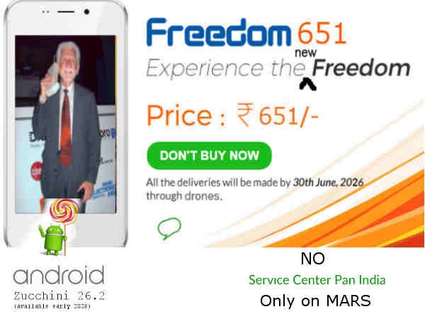 251 రూపాయలకే స్మార్ట్ఫోన్ ఇస్తామంటూ ప్రకటించిన రింగింగ్ బెల్స్ సంస్థను ఎద్దేవా చేస్తూ ఒక కొత్త వెబ్సైట్ వచ్చింది. దాని పేరు ఫ్రీడమ్651.కామ్.