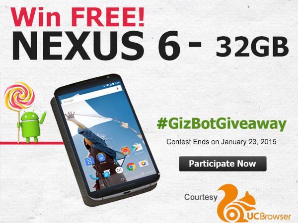 ప్రియుమైన పాఠకులకు ముందుగా సంక్రాంతి శుభాకాంక్షలు. ఉత్సాహభరిత పోటీలో మిమల్ని విజేతగా నిలిపేందుకు గిజ్బాట్ మరో Giveaway కాంటెస్ట్తో మీముందుకొచ్చింది. యూసీ బ్రౌజర్ ఇండియా సహకారంతో నిర్వహిస్తోన్న ఈ లేటెస్ట్ గిజ్బాట్ గివ్ఎవే పోటీలో గెలిచినట్లయితే ప్రపంచపు అత్యుత్తమ స్మార్ట్ఫోన్ గూగుల్ నెక్సస్ 6 మీ సొంతమవుతుంది.