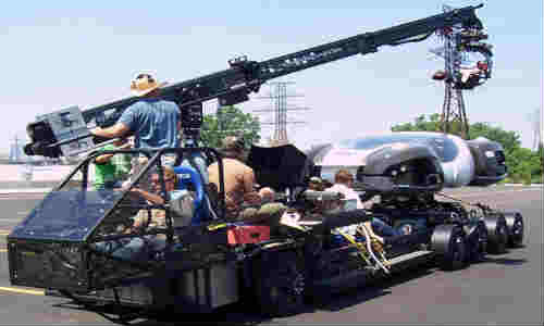ప్రాణాంతకమైన ఛేజింగ్ స్టంట్లను చిత్రీకరించే క్రమంలో ఉపయోగిస్తున్న హై-టెక్ హైడ్రాలిక్ మోషన్ ఆటో కెమెరాలు.