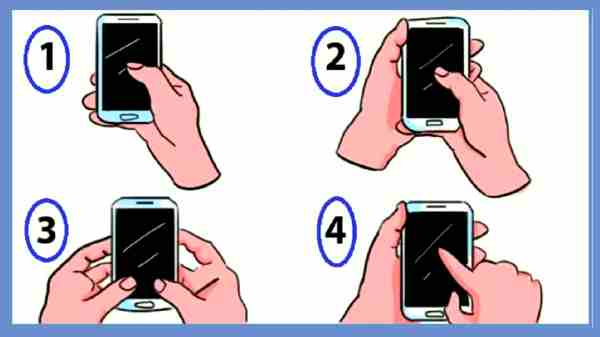 మొదటి ఫొటోలో ఉన్నట్లుగా మీరు ఫోన్ను వాడే వ్యక్తి, మీరే అయితే చదవండి. మీరు మీ ఫోన్ను ఒక చేత్తో పట్టుకుని సుఖంగా ఉండే వ్యక్తి. మీరు మీ ఫోన్ స్క్రీన్ చుట్టూ తాకడానికి మీ బొటనవేలును ఉపయోగించండి. మీరు నిర్లక్ష్యం గా , సంతోషంగా మరియు నమ్మకంగా ఉన్న వ్యక్తి అని అర్థం.