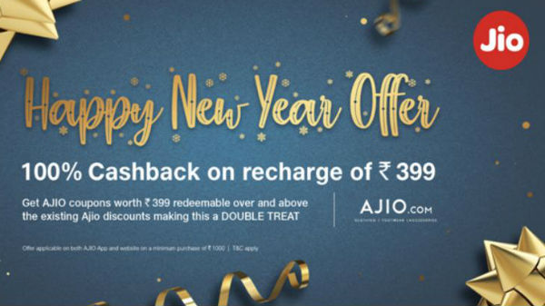 ఈ రూ.399 కూపన్లను కంపెనీకి చెందిన ఈ-కామర్స్ పోర్టల్ AJIO లో కొనుగోలు చేయాల్సి ఉంటుంది. AJIO కలిసి ప్రకటించిన ఈ నూతన సంవత్సర ఆఫర్ MyJio యాప్లో మై కూపన్స్ క్రెడిట్ కానున్నది. ఈ క్యాష్బ్యాక్ ఆఫర్ పొందాలంటే కనీసంగా రూ.1,000 వరకు కొనుగోలు చేయాల్సి ఉంటుంది