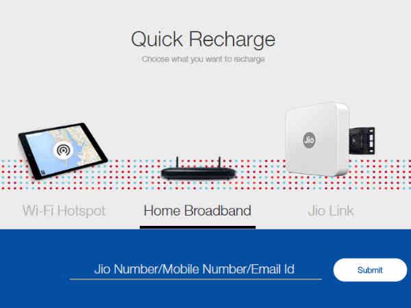 రిలయన్స్ జియో సైట్లో బ్రాడ్బాండ్ రీ ఛార్జ్ చేసుకోమంటూ హింట్