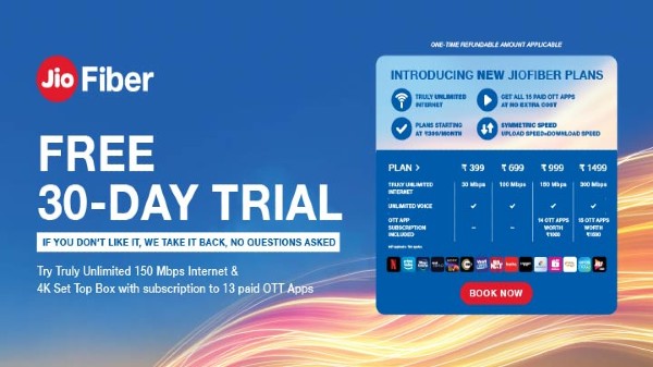 జియోఫైబర్ 30-రోజుల ఉచిత ట్రయల్ ఆఫర్