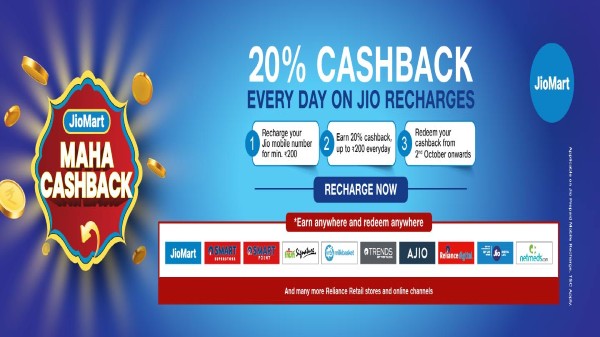 రిలయన్స్ జియో టెలికాం సంస్థ ఇండియాలో ప్రారంభం అయినప్పటి నుంచి టెలికాం రంగంలో అనేక మార్పులను తీసుకొనివచ్చింది. ఇటీవల తన యొక్క వినియోగదారుల కోసం కొన్ని రకాల ప్రీపెయిడ్ ప్లాన్ల కొనుగోలు మీద జియోమార్ట్ మహా క్యాష్బ్యాక్ ఆఫర్ ను అందించింది. అయితే ఈ గొప్ప ఆఫర్ మార్చి 31, 2022న ముగియనుంది. ఈ ఆఫర్ను రిలయన్స్ రిటైల్ విడుదల చేసింది. రిలయన్స్ స్మార్ట్తో సహా తాజా/స్మార్ట్ పాయింట్/ జియోమార్ట్, రిలయన్స్ డిజిటల్/మై జియో స్టోర్/జియో పాయింట్లు, రిలయన్స్ ట్రెండ్స్/అజియో/ప్రాజెక్ట్ ఈవ్, భాగస్వామి కిరాణా దుకాణాలు, Netmeds మరియు మరిన్ని రిలయన్స్ ఇండస్ట్రీస్ లిమిటెడ్ (RIL) ప్లాట్ఫారమ్లలో ఏవైనా ఉత్పత్తులను సేవలను కొనుగోలు చేసే కస్టమర్లకు ఈ క్యాష్బ్యాక్ ఆఫర్ వర్తిస్తుంది. పేర్కొన్న రిలయన్స్ ప్లాట్ఫారమ్ల నుండి వినియోగదారులు ఏదైనా కొనుగోలు చేసినప్పుడు వారి JioMart నంబర్లో క్యాష్బ్యాక్లు అందించబడతాయి.