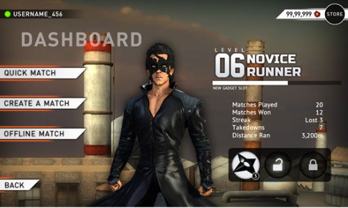 విండోస్ ఆధారిత ట్యాబ్లెట్స్ ఇంకా పర్సనల్ కంప్యూటర్ల కోసం ఈ గేమింగ్ అప్లికేషన్ త్వరలోనే అందుబాటులోకి రానుంది. ముంబయ్ బ్యాక్డ్రాప్తో సాగే ఈ గేమ్లో మొత్తం 6 లెవల్స్ ఉంటాయి. ఈ గేమ్లో భాగంగా పోరాడేందుకు సినిమా పాత్రలైన క్రిష్, కాల్, కాయా ఇంకా ఫ్రాగ్మెన్ పాత్రలలో ఒక పాత్రను ఎంపిక చేసుకోవల్సి ఉంటుంది.