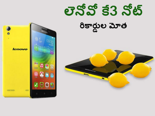 లెనోవో బడ్జెట్ ఫ్రెండ్లీ 4జీ స్మార్ట్ఫోన్ ‘కే3 నోట్'(K3 Note) భారత్లో మరో అరుదైన రికార్డును సొంతం చేసుకుంది. ఫ్లిప్కార్ట్ ద్వారా విక్రయంచబడోతున్న ఈ ఫోన్ను కేవలం రెండ నెలల వ్యవధిలో 5 లక్షల మంది కొనుగోలు చేసినట్లు లెనోవో ఒక ప్రకటనలో తెలిపింది. రూ.9,999 ధర ట్యాగ్తో లభ్యమవుతోన్న కే3 నోట్ను తొలత ఫ్లాష్సేల్స్ రూపంలో ఫ్లిప్కార్ట్ విక్రయించింది. ఆ తరువాత ఓపెన్ సేల్ పై విక్రయించారు.