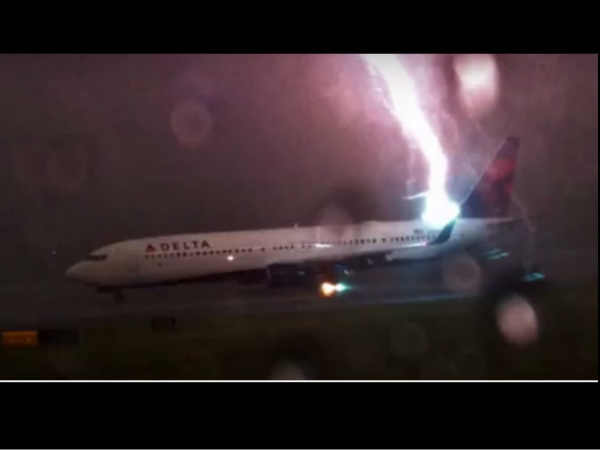 అమెరికాలోని అట్లాంటా అంతర్జాతీయ విమానాశ్రయంలో ఓ విమానంపై పిడుగు పడింది. అయితే జాక్ పెర్కిన్స్ అనే ప్రయాణికుడొకరు ఈ అరుదైన దృశ్యాన్ని చిత్రీకరించారు. పిడుగు పడుతున్న సమయంలో ఆయన గుర్తించలేదు. అయితే ఈ దృశ్యాన్ని మొబైల్ఫోన్లో చూస్తుండగా గుర్తు పట్టి ఆయన ఆశ్చర్యపోయారు. పిడుగు పడిన సమయంలో విమానంలో 111 మంది ప్రయాణికులు, ఆరుగురు విమాన సిబ్బంది ఉన్నారు. అయితే విమానం బాడీ తయారీ ఇలాంటి ప్రమాదాలను దృష్టిలో పెట్టుకుని తయారు చేసింది కావదడంతో ఎలాంటి నష్టమూ సంభవించలేదు. ప్రయాణీకులెవ్వరూ గాయపడలేదు. ఈ పిడుగులు వల్ల కలిగే నష్టాలు అలాగే ఎక్కడెక్కడ పిడుగులు పడ్డాయో ఓ సారి చూద్దాం.