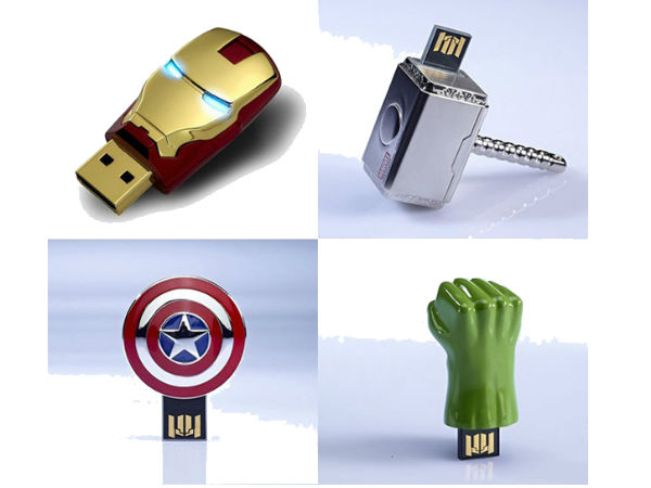ఈ అవెంజర్ డిజైన్ ఫ్లాష్ డ్రైవ్లు 8జీబి వరకు డేట్ స్టోరేజ్ సామర్థ్యాలను కలిగి ఉంటాయి.