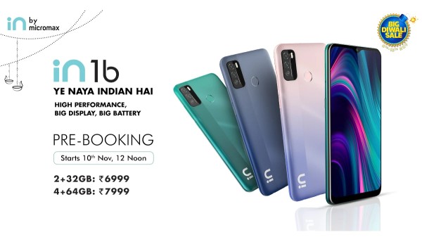 భారతీయ స్మార్ట్ఫోన్ తయారీ సంస్థ మైక్రోమాక్స్ ఇటీవల రెండు స్మార్ట్ఫోన్లను విడుదల చేసింది. ఇందులో మైక్రోమాక్స్ ఇన్ 1b ఫోన్ను ముందుగా ప్రీ-బుకింగ్ చేసుకోవడం కోసం ఈ రోజు మధ్యాహ్నం 12 గంటల నుండి అందుబాటులో ఉంటుందని కంపెనీ ట్వీట్ ద్వారా వెల్లడించింది. ప్రస్తుతం ఫ్లిప్కార్ట్లో జరుగుతున్న బిగ్ దీపావళి సేల్ సందర్భంగా మైక్రోమాక్స్ ఇన్ 1b ఫోన్ ప్రీ-బుకింగ్స్ను కంపెనీ ప్రారంభిస్తోంది. ఈ ఫోన్ రెండు రకాల స్టోరేజ్ కాన్ఫిగరేషన్లలో మరియు మూడు కలర్ ఆప్షన్లలో అందించబడుతుంది. దీని గురించి మరిన్ని వివరాలు తెలుసుకోవడానికి ముందుకు చదవండి.