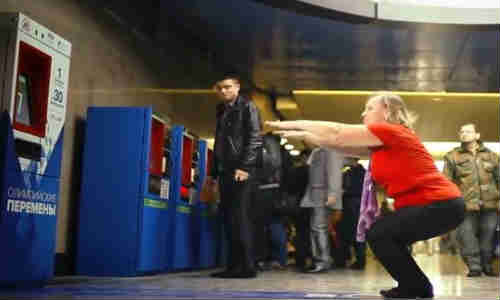 2014 వింటర్ ఒలింపిక్స్ ఇంకా భౌతికమైన ఫిట్నెస్ ను ప్రమోట్ చేసే క్రమంలో రష్యన్ ఒలంపిక్స్ కమిటీ ఓ సరికొత్త కార్యక్రమానికి శ్రీకారం చుట్టింది. ఈ క్రమంలో మాస్కో సిటీ అధికారులు మాస్కో మెట్రోలో సబ్ వే ప్రయాణీకుల ప్రత్యేక మెషీన్ ను ఏర్పాటు చేయటం జరిగింది. ఎవరైనా సరే ఈ మెషీన్ కెమెరా ముందు నిలుచొని 30 సార్లు చతికలిబడి లేచినట్లయితే ఒలంపిక్స్ కు వెళ్లేందుకు ఉచిత టెకెట్ ను పొందవచ్చు. ఉచిత టికెట్ ను దక్కించుకునే క్రమంలో పలువురు తమ శరీరాలను ఇలా శ్రమ పెట్టారు....