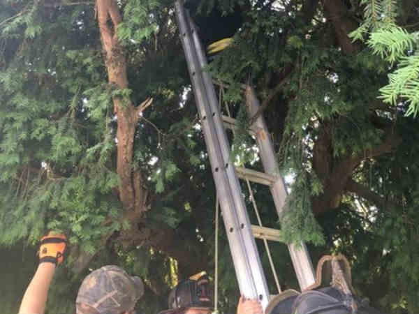 తూర్పు గ్రీన్ విచ్ టౌన్ షిప్ ఫైర్, రెస్క్యూ టీం అక్కడకు చేరుకుని నిచ్చెన వేయడంతో ఆమెకు కిందకు దిగింది. ఈ విషయాన్ని ఫైర్ డిపార్ట్ మెంట్ ఫేస్ బుక్ లో పోస్ట్ చేయడం ఈ విషయం వెలుగు చూసింది.