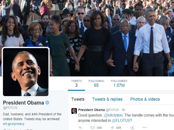 అమెరికా అధ్యక్షుడు బరాక్ ఒబామా ఇట్లా ట్విట్టర్లో ఖాతా తెరిచారో లేదా కొన్ని గంటల వ్యవధిలోనే లక్షల సంఖ్యలో అభిమానులు ఆయనకు ఫాలోవర్లుగా చేరిపోయారు. ఒబామా తన ట్విట్టర్ అకౌంట్ను ఓపెన్ చేసిన 12 గంటల వ్యవథిలోనే ఆయనను అనుసరించే వారి సంఖ్య 1.46 మిలియన్లు చేరుకోవటం ఓ అరుదైన ఘనత.
